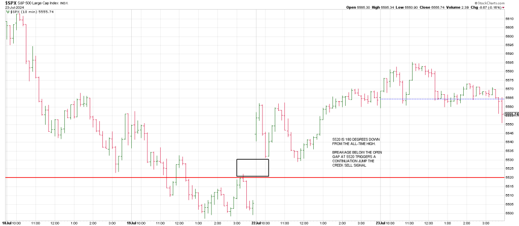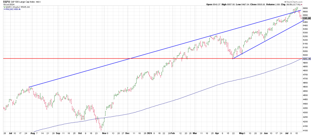 Below is a daily SPX from Monday’s report. Breakage below 5450 opens the door to the freeway to April low and the 200 day moving average which hasn’t been seen since October 2023.