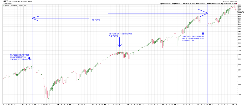 For example: from the major October 2007 top, 15 years later gives the major October 2022 bottom.