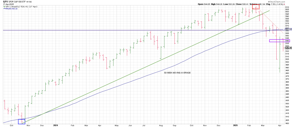 This is important because the SPY has never closed above 540 on a weekly basis since the early April low.