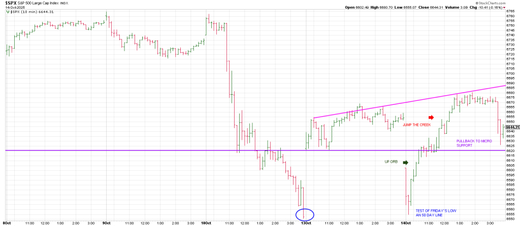 When the SPX tested Friday’s low yesterday coincident with a second test of the 50 day line and then went on to follow thru to the topside after triggering an up ORB (Opening Range Breakout), The Hulk was knocking…ultimately peeking above the 20 day moving average.