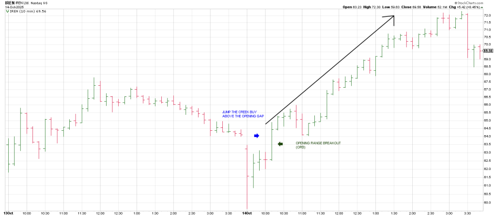 Let’s take a look at the Opening Range Breakout in IREN and BE for example.