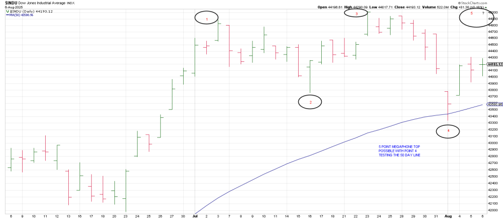 Indeed a new high on the DJIA will complete a possible Megaphone Top pattern.