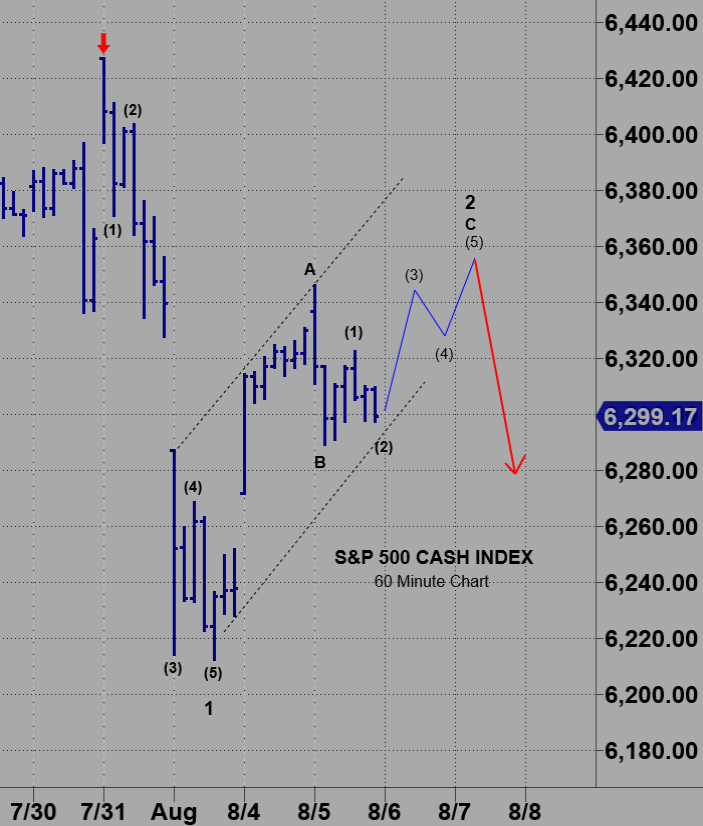 Below is an hourly SPX with a wave count that I created on August 5, prior to Wednesday’s fulfillment of a strong rally by the Roadmap.