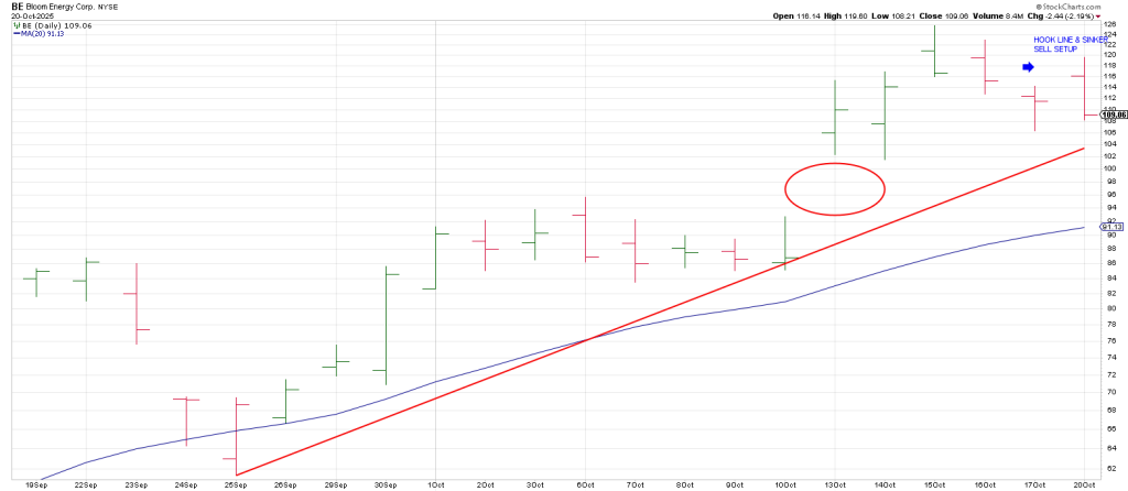When strongly trending stocks fail at their 20 DMA’s the first time down caution is warranted.