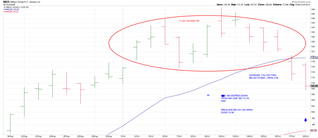 NBIS is another momentum amigo that shows an 11 day Island Top with a Breakaway Gap below its