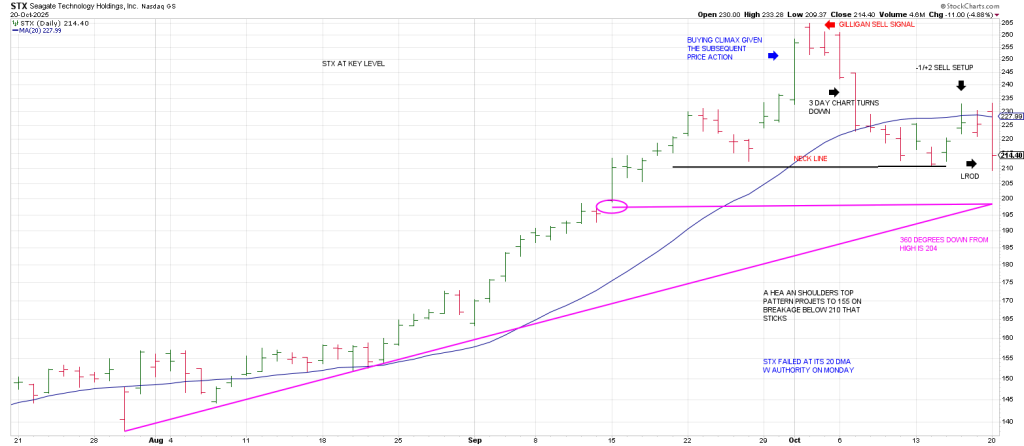 STX exploded entering October with a large range day. The next session it left a Gilligan sell signal.