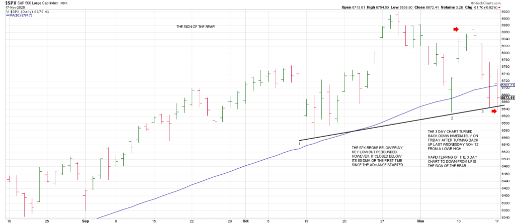 For example the SPX 3 Day Chart turned down on October 31 directly off its all-time high.
