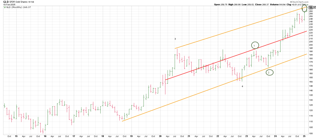 As well GLD is hitting the top of a large trend channel.