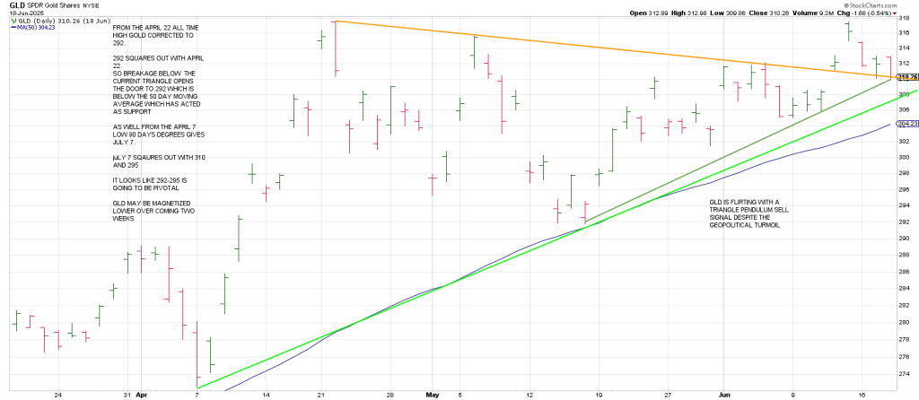 Last week we show the potential for a Triangle Pendulum sell signal on GLD.