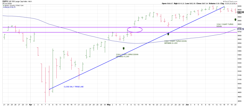 Yesterday we flagged how the SPX had turned its 3 Day Chart down for only the third time since the April 7th low.