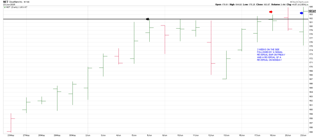 CRWV also reversed on Monday but bounced from the prior breakout pivot.
