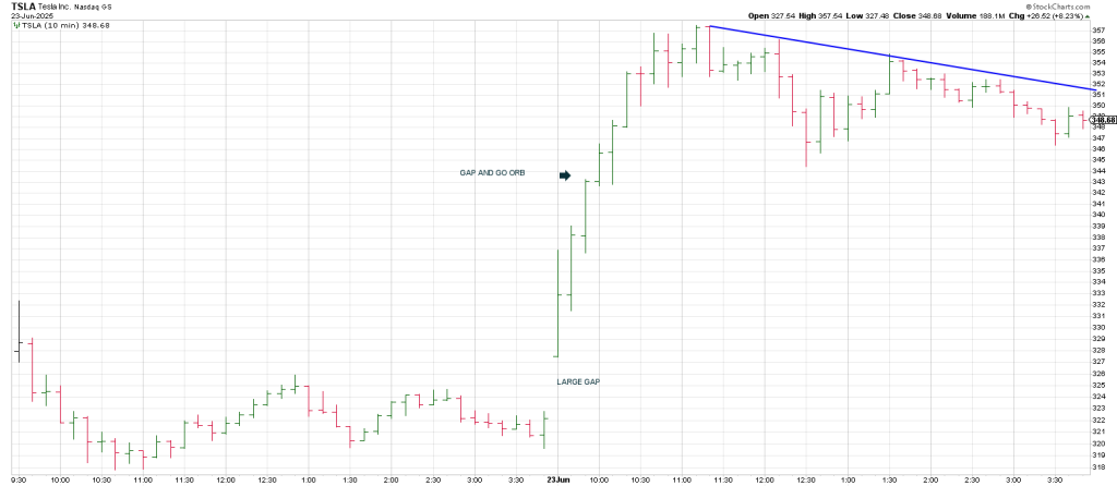 TSLA is a good example of a Gap & Go ORB (Opening Range Breakout, a move over the first 30 minute range).