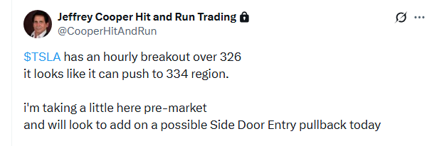 We stated that TSLA had room to run to 334 and above that opened the door higher.