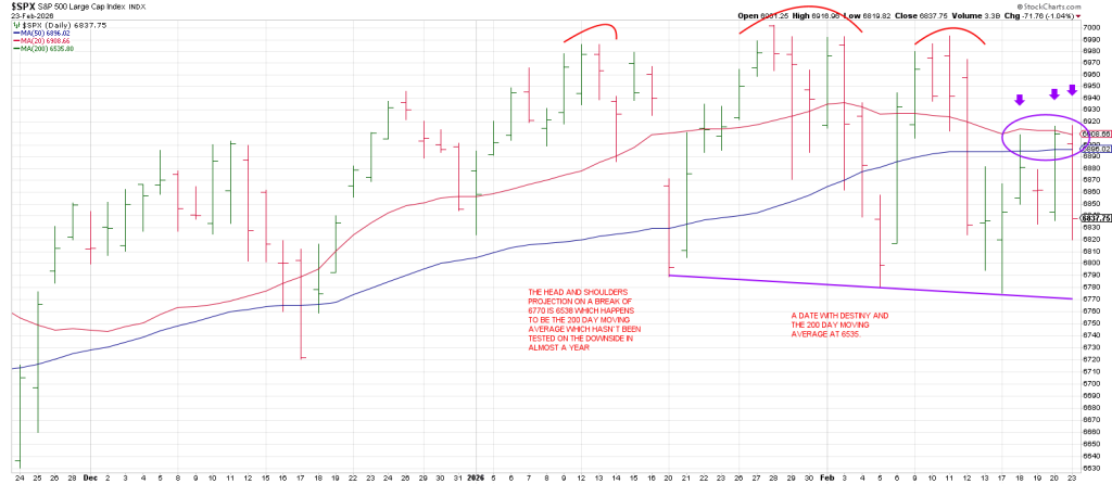 There is a Head and Shoulders projection on a break of support to 6538. The 200 day moving average is at 6535.