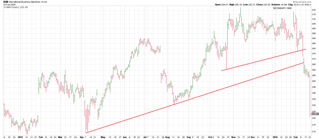 To wit, IBM just had its worst single day in a decade—down 13.14% in a DAY. That’s the worst % selloff since its IPO in 1968.