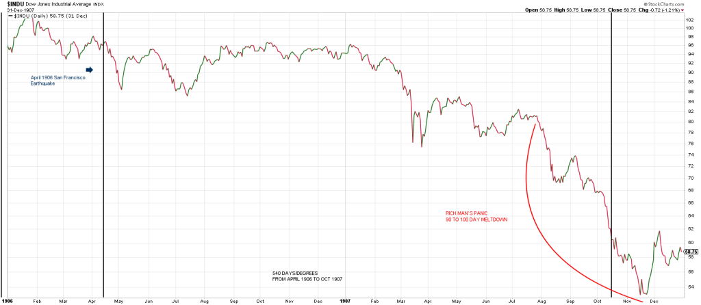 In other words the 1907 panic was 540 days/degrees following the April 1906 Earthquake.