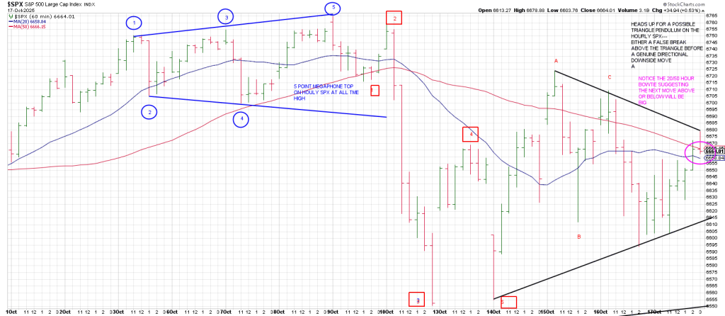 Above show the hourly Megaphone Top on the SPX just before it plunged on Oct 10.