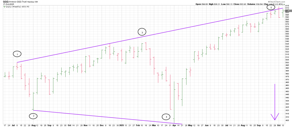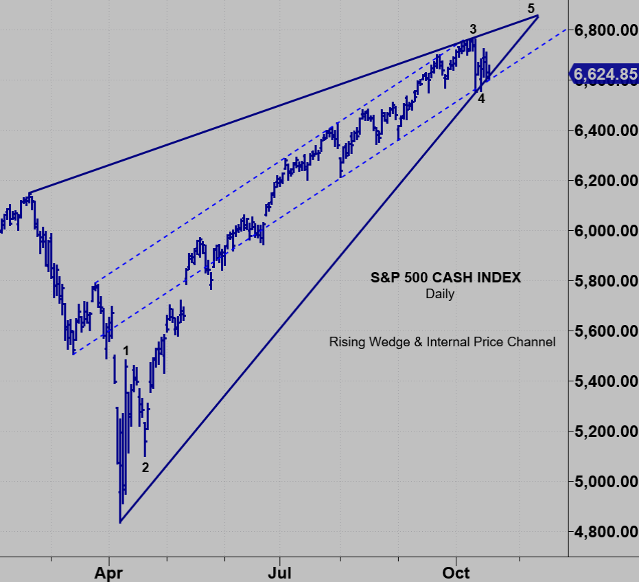 A weekly SPX shows a stunning Rising Wedge since the April low.