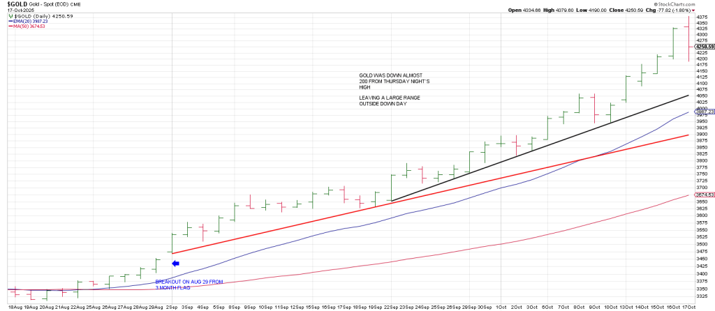 Risk off finally caught up to gold Friday as it dropped nearly 200 from Thursday night’s high.