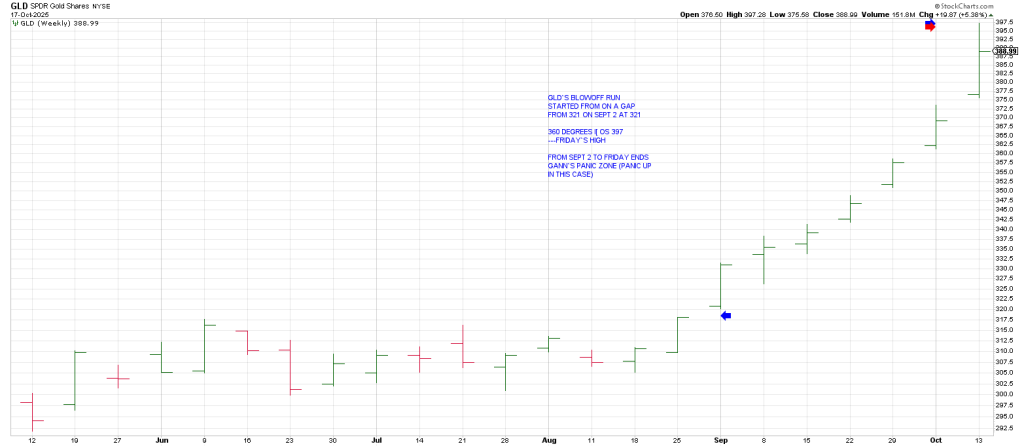 GLD’s blow-off run started from a gap from 321 on Sept 2