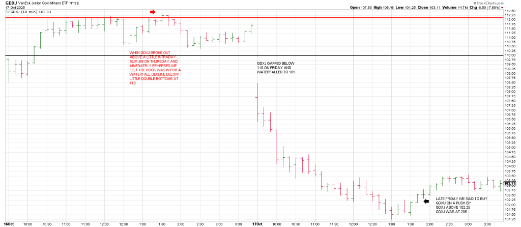 On Friday GDXJ gapped with authority below 110 and the die was cast.