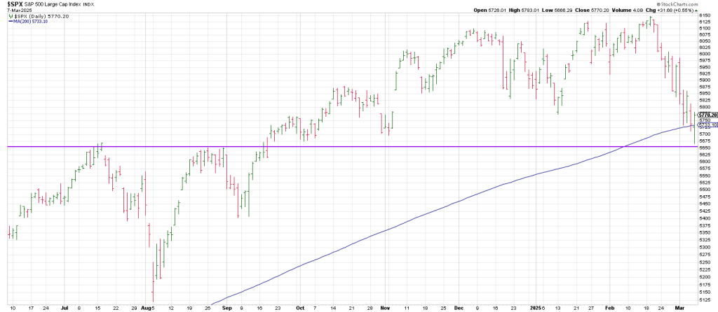 The SPX tested its 200 day moving average on Friday.