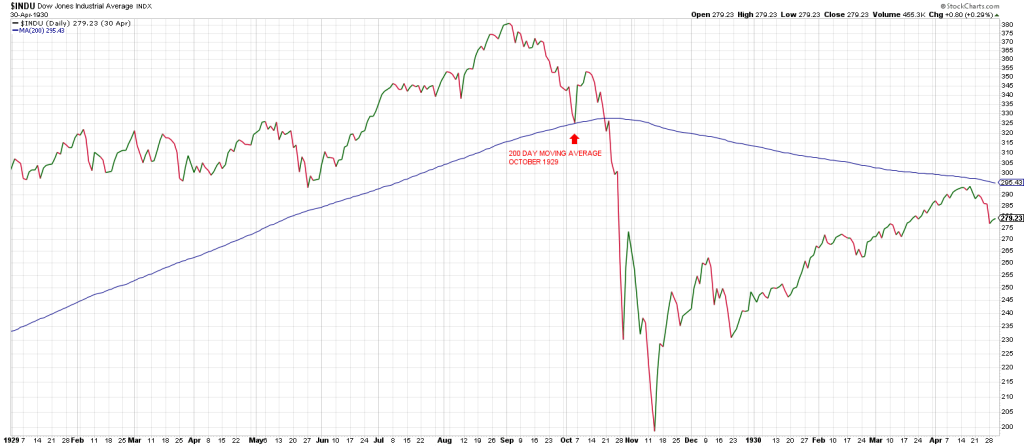 In 1929 the DJIA tested the 200 dma in early October, bounced and then gapped below it starting the Crash of ’20.