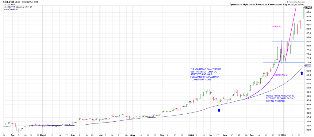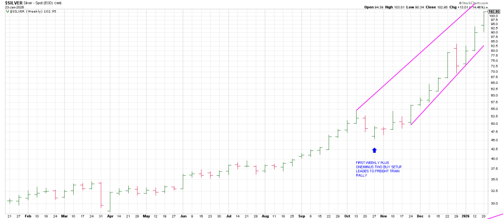 Note the frenzy didn’t start immediately when silver came out of a monthly Cup and Handle/ or inverse Head and Shoulders or a Rule of 4 Breakout in 2024. Call the pattern what you will.