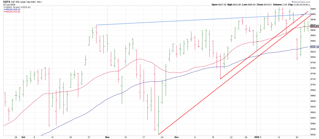 The SPX has been dead calm for the last two days following Tuesday’s large gap down and close below the 50 dma followed by Wednesday’s large recapture of the 50 day.