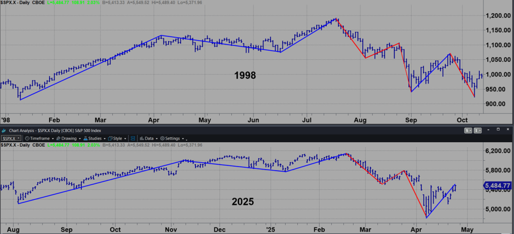 Below is a daily SPX from 1998 juxtaposed with 2025.