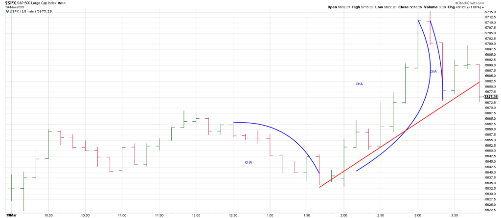 However at 3:10 (ET) the SPX turned tail following a spike to 5715 dropping 43 points in 20 minutes.