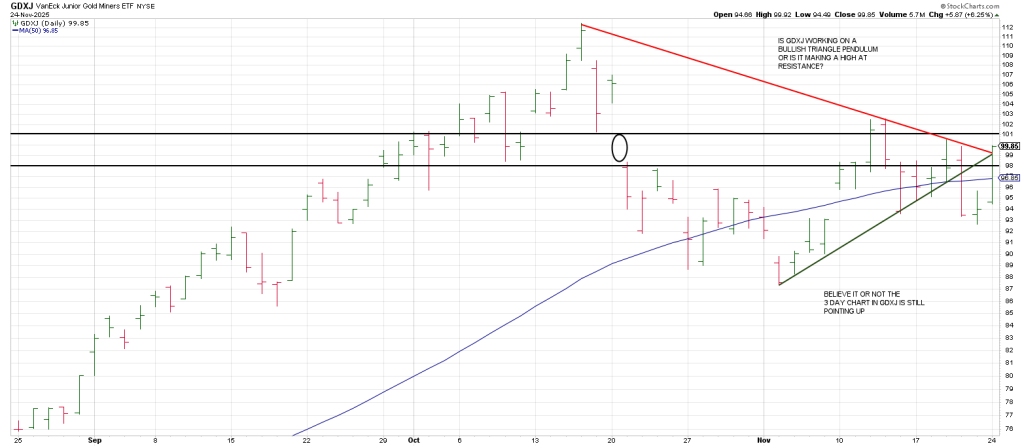 Whether a powerful Wave 3 decline is on the table or whether we get a breakout over a Descending Wedge.