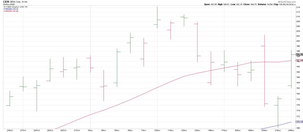 CIEN lefty a Lizard buy setup at its 50 DMA