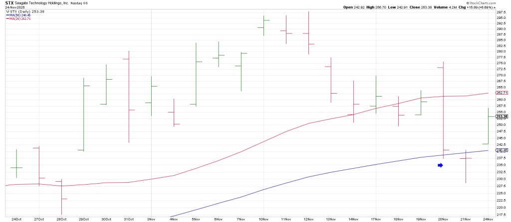 STX also left a Lizard buy signal on a Pinocchio of its 50 DMA.
